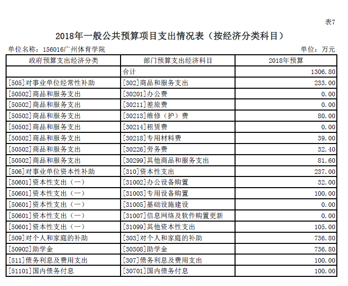 七、一般公共预算项目支出情况表(按支出经济分类科目)