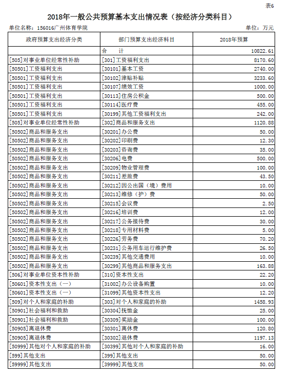 六、一般公共预算基本支出情况表(按支出经济分类科目)