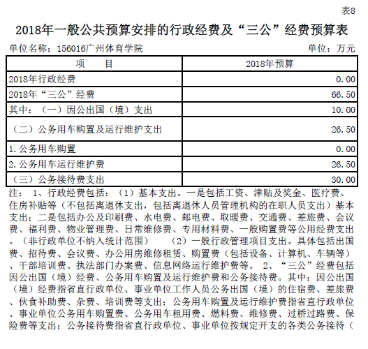 八、一般公共预算安排的行政经费及“三公”经费预算表